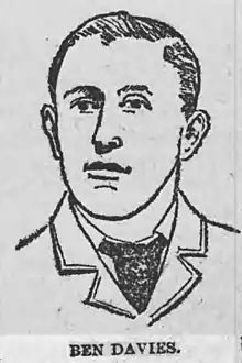 Benjamin Davies (5 June 1873 – 23 June 1930)[1] was a Welsh international rugby halfback who played rugby union for Llanelli and was capped twice for Wales. Davies captained Llanelli for the 1894-95 season and was club secretary between 1898 and 1899. He later became the coach of Llandovery College and also wrote sports articles for the Daily Mail.[2]
