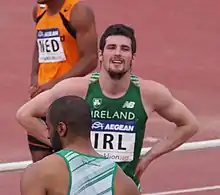 Ben Reynolds (born 26 September 1990) is an Irish athlete specialising in the sprint hurdles.[3] He represented his country at the 2015 World Championships in Beijing without advancing from the first round. His personal bests are 13.48 seconds in the 110 metres hurdles (+0.8 m/s, Bedford 2015) and 7.73 seconds in the 60 metres hurdles (Athlone 2016).