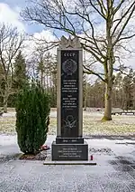 The camp of huts near Fallingbostel became known as Stalag XI-B and was to become one of the Wehrmacht's largest POW camps, holding up to 95,000 prisoners from various countries.[6] In June 1940, Belgian and French POWs were housed in the former Bergen-Belsen construction workers' camp. This installation was significantly expanded from June 1941, once Germany prepared to invade the Soviet Union, becoming an independent camp known as Stalag XI-C (311). It was intended to hold up to 20,000 Soviet POWs and was one of three such camps in the area. The others were at Oerbke (Stalag XI-D (321)) and Wietzendorf (Stalag X-D (310)). By the end of March 1942, some 41,000 Soviet POWs had died in these three camps of starvation, exhaustion, and disease. By the end of the war, the total number of dead had increased to 50,000.[6] When the POW camp in Bergen ceased operation in early 1945, as the Wehrmacht handed it over to the SS, the cemetery contained over 19,500 dead Soviet prisoners.