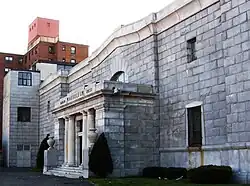 On March 27, 1917, plans were approved for the construction of a community mausoleum in North Bergen,[4] Under the New York & New Jersey Mausoleum Association, the two-story granite and reinforced concrete building was estimated costing $150,000 and was designed by the architect Charles Fall,[5] of the Hoboken Land and Improvement Company. The mausoleum takes its name from its position on Bergen Hill at the edge of the Hudson Palisades where they begin their descent to the west, overlooking Weehawken Cemetery and Palisades Cemetery.[3]