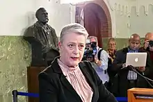 She was elected as a Member of the Norwegian Nobel Committee by the Storting (Parliament) on 22 November 2011, and was nominated by the Norwegian Labour Party. Her term started 1 January 2012 and ends 31 December 2017.[2] On 20 February 2017 she became the acting chairman of the committee, following the death of Kaci Kullmann Five.[3] On 2 May 2017, she was formally elected as the chairman of the Norwegian Nobel Committee.[4] In this capacity Reiss-Andersen selects the Nobel Peace Prize laureate together with the four other committee members, and she is responsible for formally presenting the prize.[5]