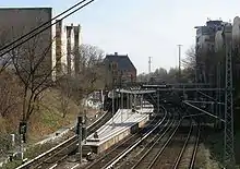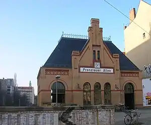 Prenzlauer Allee is a railway station in the Prenzlauer Berg neighbourhood of Berlin, named after the Prenzlauer Allee road. Situated on the Berlin Ringbahn, it is served by the S-Bahn lines S41, S42, S8 and S85. The station is barrier-free.