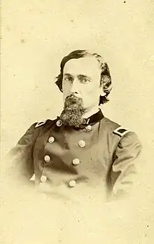 In 1861, Farrar enlisted in the Union Army. That May, just as the American Civil War broke out, he was appointed as an aide-de-camp for General Nathaniel Lyon. Early in his service under Lyon, Farrar engaged in a campaign to oust Missouri’s pro-Confederate government. He was also an active participant in the Camp Jackson Affair, personally sent to Confederate General Frost delivering the message to surrender.[2] After the Battle of Wilson’s Creek and General Lyon's death, Farrar was appointed to the staff of General Henry Halleck in October 1861. Farrar served as Provost Marshal of the Department of the Missouri until October 1862. Then he organized the 30th Missouri Volunteer Infantry and became its Colonel. Serving under General Ulysses S. Grant in the Mississippi River campaigns; he commanded Francis P. Blair's Brigade in the Siege of Vicksburg. Afterwards he formed an all-black regiment which would later become the 6th U.S. Colored Heavy Artillery. Farrar later commanded the District of Natchez, and was brevetted Brigadier-General on March 9, 1865.[1]