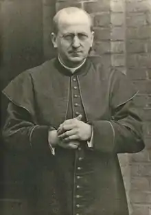 Bernhard Lichtenberg (German: [ˈbɛʁn.haʁt ˈlɪçtn̩ˌbɛʁk] ⓘ; 3 December 1875 – 5 November 1943) was a German Catholic priest who became known for repeatedly speaking out, after the rise of Adolf Hitler and during the Holocaust, against the persecution and deportation of the Jews. After serving a jail sentence, he died in the custody of the Gestapo on his way to Dachau concentration camp.[1] Raul Hilberg wrote: "Thus a solitary figure had made his singular gesture. In the buzz of rumormongers and sensation seekers, Bernhard Lichtenberg fought almost alone."[2]