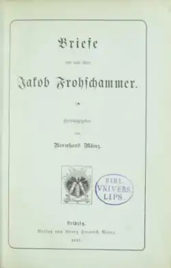 - Briefe von und über Jakob Frohschammer. Leipzig: Georg Heinrich Meyer. 1897.