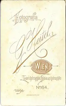 Bernhard Wachtl, like the Vienna-based lithographers K. Krziwanek, Trapp & Munch, Turkel & Steiner, Ipop & Turkel, and Eisenschiml, designed and printed the logos of photographic studios at the verso of the cartons supporting 19th century photographic prints. As a lithographer and printer of this specific product, Wachtl formed contracts throughout the Balkans and the East, from Athens to Batoum, Trebizond, Philippople and from Adrianople to Constantinople (Istanbul), Smyrna and Cairo. In Greece, especially, he handled thirty one photographic studios, such as the Rhomaides Brothers, George Moraites, Anastasios Gaziades, the Kanta Sisters, Nikolaos Zepji and Carl Merlin.[1]