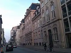 The mansion was after Bernstorff's death in 1772 passed to his nephew Andreas Peter Bernstorff. His property was home to five households at the 1787 census. Andreas Petrus Bernstorff resided in the building with his wife Augusta Lowisa (née Stolberg), their six children (aged six to 20) and the hovmester Ferdinant Kock.[3] Their staff comprised 38 people.[4][5] Jens Jørgensen, a courier at the Royal Danish Library, resided in the building with his wife Sara Hillebrand and their five-year-old son Johan Daniel Jørgensen.[6] Johan Friderick Baumgarten, an inspector at the Class Lottery, resided in the building with his wife Dorothea Friderica, their daughter Ide Hedevig, one maid and one female cook.[7]