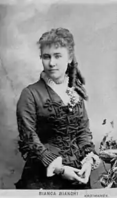 Schwarz was born in Heidelberg on 27 January 1855, the daughter of actors who worked at nearby Mannheim.[1] As an opera singer, she was for many years a prominent member of the company of the Vienna Court Opera, where her fame was such that an asteroid discovered on 4 September 1880 was named 218 Bianca in her honour.[2] Two years later Johann Strauss II was inspired by her to compose his Frühlingsstimmen waltz for orchestra and solo soprano voice,[1] still familiar today.