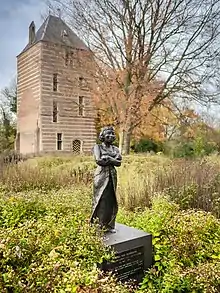Statue of Bertha van Heukelom in front of the tower of IJsselstein castle