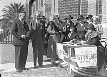 Still only 50 years old when he lost the premiership, Stevens had long had hopes of a career in the federal parliament.[9] Prime Minister Joseph Lyons had no clear successor, and within New South Wales many thought Stevens would be a suitable replacement; he had little support in other states, however.[10] Despite Robert Menzies's attempts to discourage him, he abandoned his Assembly seat in 1940 and ran for the Labor-controlled Division of Lang [11] during that year's federal election. He was easily defeated by the ALP incumbent, Dan Mulcahy.[1][12]