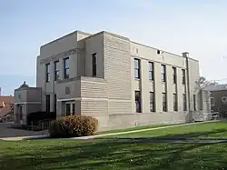 The Berwyn Health Center is a historic public health clinic at 6600 W. 26th Street in Berwyn, Illinois. Built in 1938–39, the building provided an expanded home for the city's health department. In addition to providing healthcare and leading vaccination efforts, the department was responsible for food inspection and Great Depression relief programs in the 1930s, and the new building gave it the space and resources it needed to accomplish its many duties. Along with the city's municipal building and post office, the health center was one of three buildings built in Berwyn with Public Works Administration funds in a three-year period. Architect Vladimir J. Novak, a Berwyn resident, designed the building using elements of Art Deco and Moderne architecture. Both styles were commonly used, often together, in PWA buildings; in the case of the health center, its Art Deco influence is visible in its geometric massing, while its horizontal banding is a typical Moderne feature. The building remains in use as a health clinic and government office.[2]