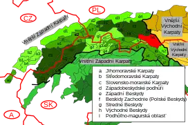 ![]() Location of Beskid Sądecki, marked by red color and labeled with h1