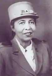 In 1941, during World War II, Walcott became the first African American to serve as an Acting Field Director for the Red Cross.[14][13] Between 1942 and 1946, she served as the Public Relations Director of Tuskegee[13] and much of her work focused on chronicling the development and reputation of the Tuskegee Airmen.[14] To promote the war effort, Walcott traveled extensively and sold war bonds. In 1946, she was reappointed as the Acting Field Director, serving until 1947. Her duties in the post required that she oversee aid to returning veterans and assist with training of Red Cross volunteers.[13] During the same period, she joined the Women's International League for Peace and Freedom (WILPF), along with other noted African American women leaders like, Sadie Sawyer Hughley, Shirley Chisholm, Coretta Scott King, and many others.[15]