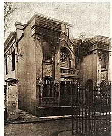 The synagogue was devastated by the far-right Legionaries in 1941. The building was "burnt while the believers were attending the religious service".[2] It was burnt "when 23 faithful caught inside during the religious service were killed".[3]