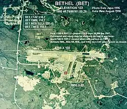 Bethel Airport (IATA: BET, ICAO: PABE, FAA LID: BET) is a state-owned public-use airport located three nautical miles (6 km) southwest of the central business district of Bethel, a city in the Bethel Census Area of the U.S. state of Alaska.[1]