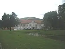 In 1784, the mansion was rebuilt in late-baroque Florentine style, after the fashion of Vienna at the time. The west wing contains a chapel dedicated to the Holy Cross, while other notable features include a carved staircase leading to the main hall, itself decorated with late-baroque trompe-l'œil ceiling frescoes painted by an unknown artist c. 1780.