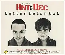 "Better Watch Out" is the eleventh single by Ant & Dec, formerly known as PJ & Duncan and the first to be taken from their final album, The Cult of Ant & Dec.[1] The song has no relation to Christmas, and is instead about a man who tries to court a girl only to get confronted by her brothers. The video starts with Ant & Dec in a barbershop.