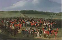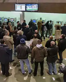 Betting on horse racing or horse betting[1] commonly occurs at many horse races. Modern horse betting started in Great Britain in the early 1600s during the reign of King James I.[2][3] Gamblers can stake money on the final placement of the horses taking part in a race. Gambling on horses is, however, prohibited at some racetracks. For example, because of a law passed in 1951, betting is illegal in Springdale Race Course, home of the nationally renowned Toronto-Dominion Bank (TD Bank) Carolina Cup and Colonial Cup Steeplechase in Camden, South Carolina.