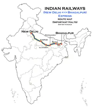 The 12349 / 12350 Bhagalpur–New Delhi Weekly Superfast Express is a Superfast train of the Indian Railways connecting Bhagalpur Junction in Bihar and New Delhi of Delhi. It is currently being operated with 12349/12350 train numbers on a weekly basis.[1][2]