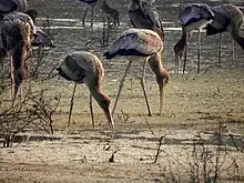 The Siberian crane, which formerly lived throughout the entire Indo-Gangetic plains of India, is reported to be no longer found in the area. Its absence has been attributed to hunting by nomadic tribes along the species' 5,000 mile migration route from Siberia to Bharatpur.
