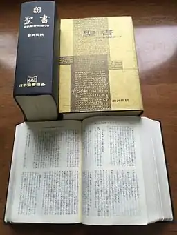 — The New Japanese Bible Postscript - ↑ Norihisa Suzuki, Japanese in the Bible: A History of Translation, (In Japanese) Iwanamishoten, 2006, ISBN 4-00-023664-4, pp.148-168