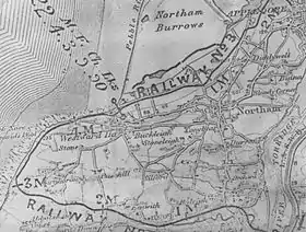 The Bideford, Westward Ho! and Appledore Railway (B, WH & A, R) was a railway running in northwest Devon, England. It is unusual in that although it was built as a standard gauge 4 ft 8+1⁄2 in (1,435 mm) line, it was not joined to the rest of the British railway network, despite the London and South Western Railway having a station at Bideford East-the-Water, just on the other side of the river Torridge from the main town. The line was wholly situated on the peninsula made up of Westward Ho!, Northam and Appledore with extensive sand dunes by the Torridge and Taw estuary. The line opened in stages between 1901 and 1908, but closed in 1917, having been requisitioned by the War Office. Re-opening the line after World War I was considered, but dismissed as a viable option.[1] The B.WH!&A.R. was the only railway company in the British Isles to have an exclamation mark in its company title.