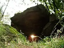 According to Karl Benjamin Preusker, several rocks in Upper Lusatia were considered prehistoric offering altars. Among these he counted a rock on Bieleboh, the so-called "Bieleboh altar".[3][5] Local historians from Sohland an der Spree examined this presumed altar for its possible calendarial use for observations of the sun in 2007. It could be shown that an eye-shaped opening through the rock, the Teufelsauge ("devil's eye"), allows to determine the day of the equinox when the light of the rising sun passes through it.[6][7]