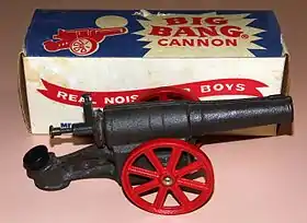 The Big-Bang Cannon is an American toy cannon first manufactured in the early 20th-century. Numerous consumer fireworks injuries[1] convinced a physics professor at Lehigh University in Bethlehem, Pennsylvania to patent a "Gas Gun" in 1907, and the manufacturing of Big-Bang Cannons started in 1912, from the Gas Cannon Company.