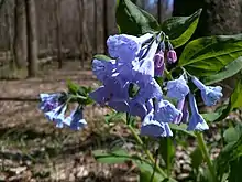 Big Creek traverses three nearly contiguous forested parks. The terrain is undulating and dissected by many small tributary streams with steep banks. In some places, the creek cuts through 40 to 50 feet of till and provides scenic overlooks. The wetter lowland areas near the creek are home to sycamore and cottonwood trees while the better drained hilltops are generally home to a Beech-Maple forest interspersed with patches of predominantly red oak, hemlock, and hickory trees. Wildflowers including trilliums and bluebells are abundant in the spring.