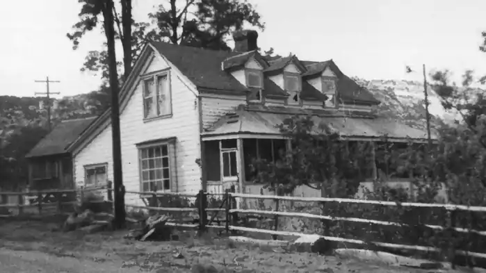 The Big House was built in about 1875 by Dellie Webb and Heber Ayers,[5] carpenters and craftsmen associated with the Orderville United Order.[6] The new house was called the "Big House" because other Moccasin residences at the time were generally one-room cabins.[7] The house was built for John Covington and his family, who were given "stewardship" of the Moccasin property and were designated caretakers of it for the Orderville United Order.[8] In 1883, Christopher B. Heaton replaced Covington as caretaker of the Big House and other Moccasin property.[7][9]