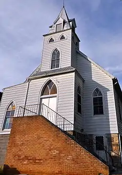Big Spring Baptist Church, also known as First Baptist Church, is a historic Baptist church building located near Elliston, Montgomery County, Virginia. It was built about 1880, and is a one-story, four-bay, nave plan frame structure with a high gable roof. It features a projecting three-stage central tower. Also on the property is the contributing church cemetery where the deceased members of most of the area's African-American families are buried.[3]