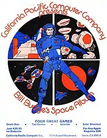 Bill Budge's Space Album is a collection of four Apple II action games written by Bill Budge and published by California Pacific in 1980.[1] The games are Death Star, Asteroids, Tail Gunner, and Solar Shootout.[3] Death Star was based around a scenario similar to the Death Star "trench battle" that formed the climax of the 1977 film, Star Wars Episode IV: A New Hope. Asteroids was a variant of the popular arcade video game of the same title.