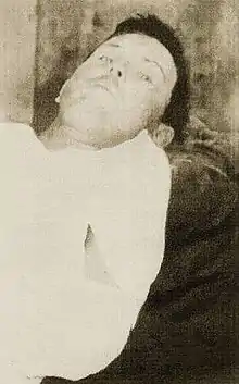 The Journal then went to state that, "The other dead body proved to be that of Tom Evans..." and marked number six on their map of the shooting area as "Where Tom Evans fell" and in three other references to him The Journal called him Tom. For some reason, however, the body was buried as Bill Powers. While six men were confirmed to had been seen riding into town, other witnesses that day were all in agreement that upon reaching town there were only five men in the group.[17] After the attempted robbery, Emmett was taken upstairs above the drug store to be treated by Dr. Wells. In order to persuade the townsfolk not to hang him, he agreed to tell them everything they wanted to know. As Emmett reviewed the roles of the various participants, he concluded by saying, "Then there was Tom Evans down tending the horses." He then corrected himself, saying that he meant Bill Powers.[18] No one then or later asked him about the horse tending remark, but it couldn't have referred to Bill Powers because his role as an active participant is well recorded. Many newspapers at the time assumed that an unknown member of the gang escaped. Since Emmett had originally attempted to convince his captors that he was Charles Dryden, until he realized that it was hopeless, his word is considered by many to be of questionable value. If someone in the gang had escaped, there would be nothing gained by Emmett for admitting it. It has been speculated by those seeking to answer the confusion that Bill Powers possibly escaped and it was Tom Evans who was killed, as originally reported, or that Tom Evans was just an alias of Bill Powers.