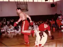 Wallace has taught karate, judo, wrestling, and weightlifting at Memphis State University. The author of a college textbook about karate and kinesiology, he continues to teach seminars across the United States and abroad.[10] He has acted, most notably in A Force of One starring Chuck Norris.[14] Wallace was the play-by-play commentator for the inaugural Ultimate Fighting Championship pay-per-view event UFC 1 in 1993 alongside fellow kickboxer Kathy Long and NFL Hall of Fame player Jim Brown in which he burped as he said, "Hello, I'm Bill Wallace, and welcome to McNichols Arena" in what has become a much beloved blooper from that event.[8] Wallace administers an organization of karate schools under his "Superfoot" system. He was elected to Black Belt Magazine's Hall of Fame in 1973 as "Tournament Karate Fighter of the Year" and again in 1978 as "Man of the Year."[15] His film credits include A Force of One with Chuck Norris; Killpoint, with Cameron Mitchell; Continental Divide and Neighbors, with John Belushi; The Protector, with Jackie Chan; Los Bravos with Hector Echavarria; A Prayer for the Dying, with Mickey Rourke; Ninja Turf; and Sword of Heaven.[16]