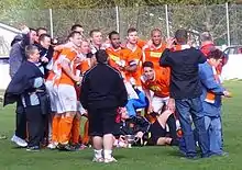 Bilston Town players celebrate beating Haughmond 4-1 to gain promotion to the WM(R)L Premier Division in May 2013