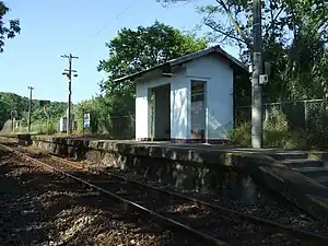 The station consists of one ground-level side platform serving a single bi-directional track. There is no station building, but only a small waiting room, and the station is unattended. Although a ground-level station, it is located on a hill above the neighboring hamlet.