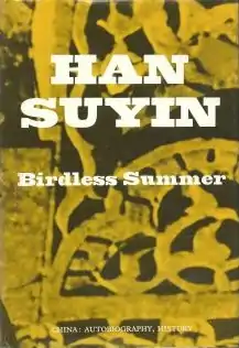Birdless Summer is an autobiography by Han Suyin. It covers the years 1938 to 1948, her work as a midwife in Chengtu and then going to London with her husband, who was a military attaché there. Also, her training as a doctor, the start of the last phase of the Chinese Civil War, in which her husband died fighting for the Kuomintang.