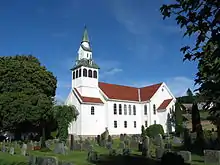 Birkenes Church (Norwegian: Birkenes kirke) is a parish church of the Church of Norway in Birkenes Municipality in Agder county, Norway. It is located in the village of Mollestad, about 3.5 kilometres (2.2 mi) southwest of the municipal centre of Birkeland. It is the church for the Birkenes parish which is part of the Vest-Nedenes prosti (deanery) in the Diocese of Agder og Telemark. The white, wooden church was built in a cruciform design in 1858 using plans drawn up by the architect Christian Heinrich Grosch. The church seats about 650 people.[1][2]
