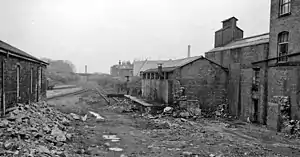 The station area is now an industrial estate. West of the station, the Raikes Lane overbridge has since been bricked up.[2] and the cutting west of the station has been filled in. Going east, the bridge over the A62 Gelderd Road was removed [3]