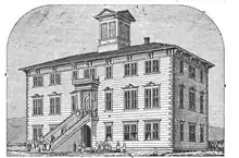 The school was founded with an initial offer in 1875 of $10,000 by New York socialite, heiress and philanthropist Catharine Lorillard Wolfe, on the condition that Bishop Whitaker find matching funds elsewhere. By mid-1876, funds had been raised and a half-block of land had been donated by the Central Pacific Railroad. The school opened October 12, 1876, on a site on the edge of town ("the walk from the depot to the school was nearly half the way through sagebrush, and north and west was an unbroken waste of sage as far as the eye could see") with fifty pupils and five teachers under the leadership of principal Kate A. Sill.[1]