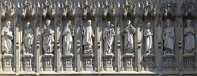 A statue of Lucian Tapiedi, the one indigenous Papuan[14] among the Anglican martyrs of New Guinea, is installed among the niches with other 20th-century Christian martyrs, over the west door of Westminster Abbey in London. The statue of Lucian Tapiedi stands second from right.