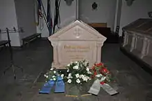 Half a year after his death, on 16 March 1899, the coffins of Otto von Bismarck and his wife, who had been buried at the Bismarck estate in Varzin, Pomerania (now Warcino, Poland), were ceremonially interred in two marble sarcophagi in the Friedrichsruh chapel. This date was chosen because it was the 11th anniversary of the funeral of Kaiser Wilhelm I. The funeral was attended by Wilhelm II, with his wife and a large entourage.