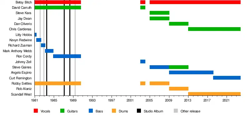 - Betsy 'Bitch' Weiss – vocals (1980–present)
