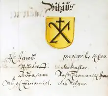 The Bitzius coat of arms in the Bernese register of arms, 1684