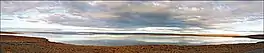 At 57 km2, Blöndulón (Icelandic pronunciation: [ˈplœntʏˌlouːn] ⓘ) is one of Iceland's largest lakes. It was created in 1984-1991 as a reservoir for the Blönduvirkjun [ˈplœntʏˌvɪr̥cʏn] power plant, and has a depth of 39 m. [1] It is situated near the Kjölur highland road in the Highlands of Iceland. The hot springs of Hveravellir are situated some 25 km to the south.