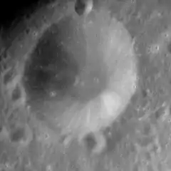 Black is a small lunar impact crater that lies just to the southeast of the walled basin Kästner. To the south-southwest is the crater Ansgarius, and to the east is the small Dale. It is located near the eastern limb of the Moon, just to the southwest of the Mare Smythii.
