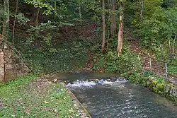 The Lauterquelle, or Lauter Well, (48°31′27″N 9°29′23″E / 48.52403°N 9.48971°E) is 20 metres (66 ft) ahead of the Lauter Mill, where the water-impermeable valley floor emerges. This source is so strong and rich that it could drive an overshot mill, the Lauter Mill.