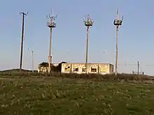 The Black Point Communications Annex was an antenna array and off-site radio communications annex located in Novato, California, 1.5 miles from Black Point, from which it gained its name.[1] It is located 4 miles north of Hamilton Field, a position that was chosen due to its close proximity to a major air force hub. Due to the property having been privately owned, the federal government had to use eminent domain twice to acquire the land, first in 1939 and again in 1957 in order to expand the array.[2][3] In 1952, both the Hamilton Air Force Base and the Black Point Communications Annex were declared "Permanent Installations" by the United States Air Force, but their usefulness had already begun to decline, and on January 11, 1976, the General Services Administration (GSA) was placed in charge.[3] Eight years later, they sold the former Black Point Communication Annex to the State of California. Many of the buildings are still intact, such as an electrical power station, 2 transmitting building/control rooms, a generator room, and most of the antennae. Some of the other buildings that were built out of wood or corrugated steel are reduced to foundations.[3] The land on which the array is located is overgrown, and visibly different from the fields and pastures that surround it.
