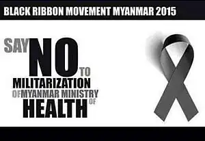 | Motto: Say no to militarisation of Myanmar Ministry of Health. Black Ribbon Movement Myanmar 2015 | |