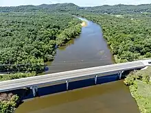 The Black River is a river in west-central Wisconsin and tributary of the Mississippi River. The river is approximately 190 miles (310 km) long.[3] During the 19th century, pine logs were rafted down the Black, heading for sawmills at La Crosse and points beyond.